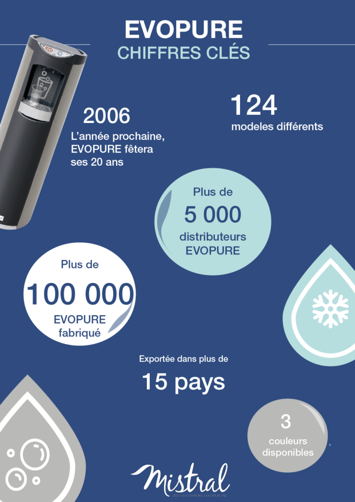 Un cap important pour EVOPURE va arriver, notre fontaine à eau devenue une référence depuis 20 ans. Pensée pour être fiable, performante et durable, elle accompagne, depuis bientôt deux décennies, de nombreuses entreprises et collectivités dans leur démarche d’hydratation responsable.